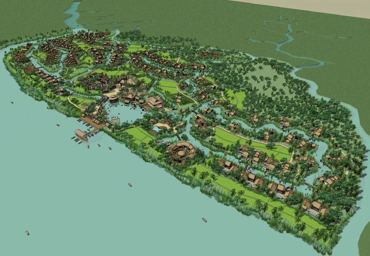 Thiết kế toàn khu nghỉ dưỡng Six Senses Saigon River Nhơn Trạch được kết nối bằng các kênh rạch đan xen. Với hệ thống sông nước phía trước các biệt thự và phòng nghỉ cao cấp.