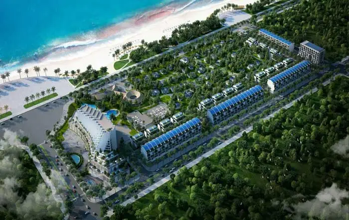 - Loại hình sản phẩm: Khu resort bao gồm khách sạn, khu bungalows và các tiện ích: café biển, nhà hàng và bể bơi & Khu BĐS du lịch bao gồm khách sạn, shoptel, biệt thự và tiện ích từ clubhouse.