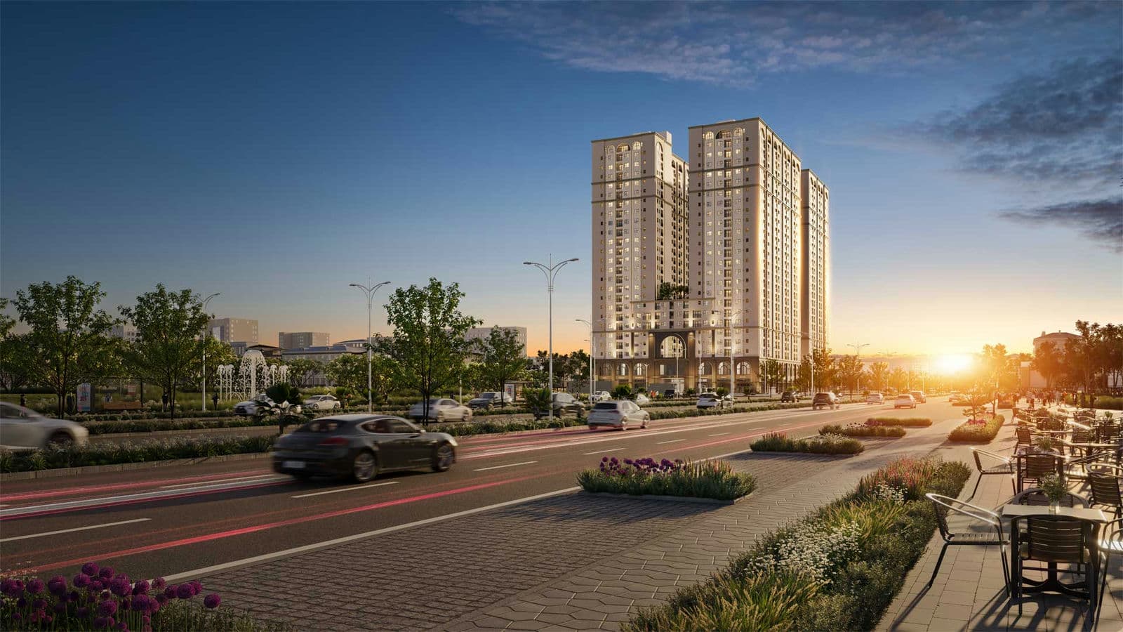 | Tiện ích | • Trung tâm thương mại, cổng chào và sảnh đón sang trọng, công viên trung tâm, hồ bơi, phố đi bộ, Gym, Spa,… |