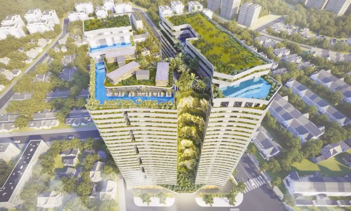 | Tiện ích: | 7 tầng sân vườn, Trung tâm thương mại tầng 1 & 2, vườn treo trên tầng 27, hồ bơi tràn tầng 28, công viên cây xanh chiếm hơn 50% diện tích |
