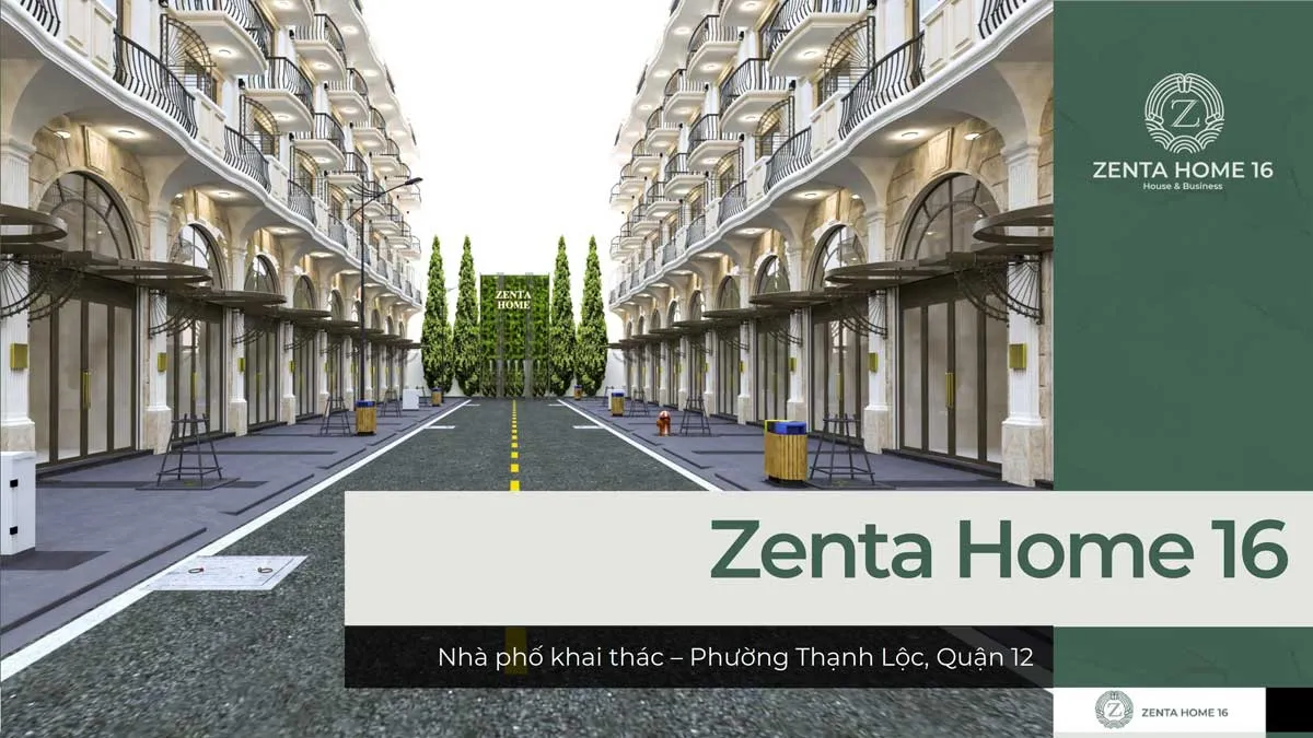 Zenta Home 16 là Dự án Nhà phố khai thác – Phường Thạnh Lộc Quận 12 do Công ty Cổ phần Đầu tư Zentaland làm chủ đầu tư. Dự án có quy mô 2.868 m2 với 32 căn nhà phố xây sẵn 1 Trệt + Lửng + 3 Lầu có diện tích từ 50-60-90m2. Zenta Home 16 nằm ngày Cửa Ngõ Giao Thương Liên Tỉnh nhờ có vị trí giáp ranh với Quận Gò Vấp, Huyện Hóc Môn, Tỉnh Bình Dương, đồng thời nằm giữa hai khu vực đang phát triển của Quận 12 là Phường Thạnh Xuân và Phường An Phú Đông. Bên cạnh đó, Zenta Home 16 còn nằm ngay sát Ngã Tư Ga, chỉ cách ga Metro số 4 hơn 500m.